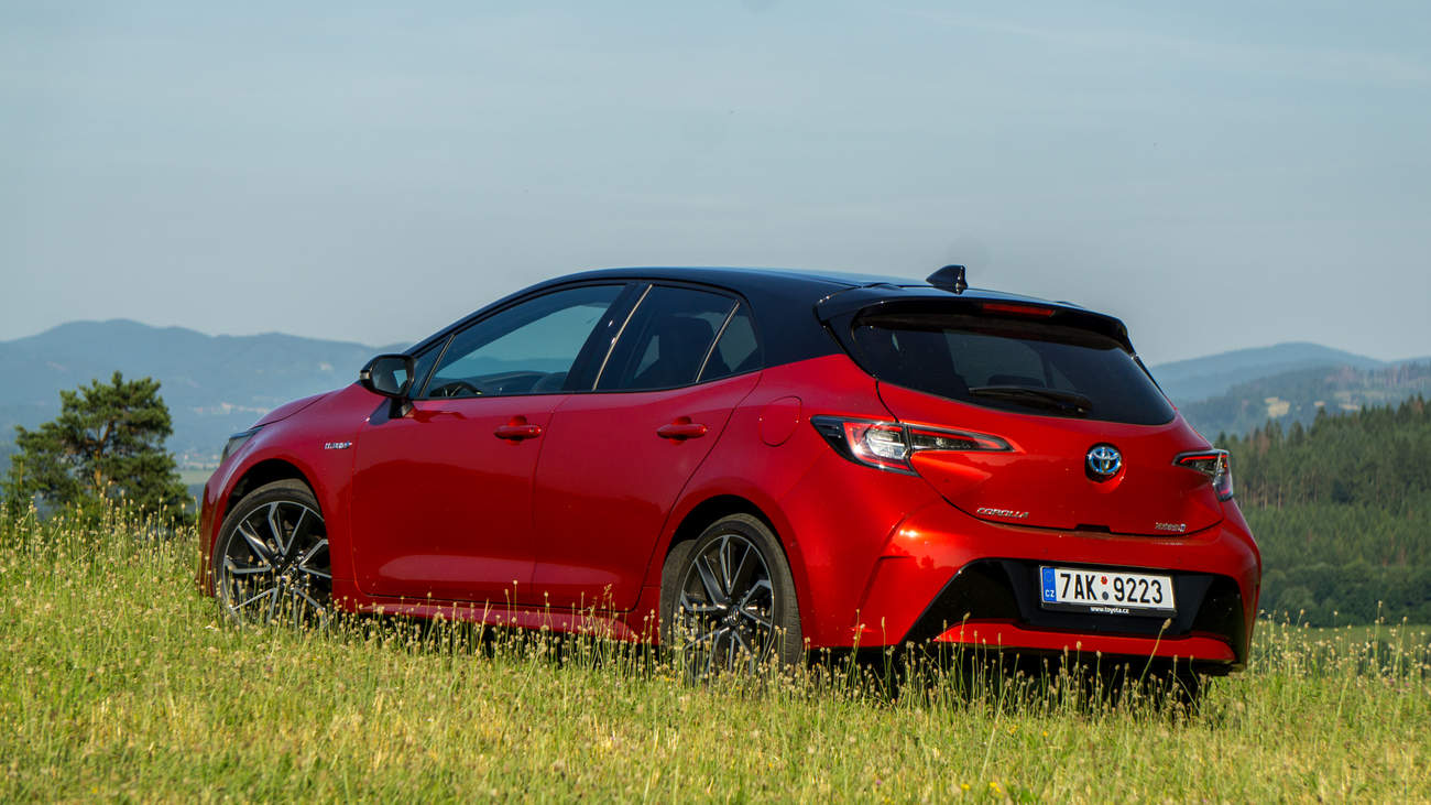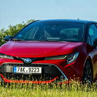 On je to vlastně Auris. Ale říkají tomu Corolla. Ona to sice byla v podstatě Corolla i předtím, ale… No to je fuk. Nové auto na všechno, Golf od Toyoty, chcete-li. Kotrmelce kolem názvu teď vynechme, prostě se zase v Česku prodává Corolla pod tím správným názvem. Tahle je hybridní, ten slabší model, je prďácky červená s černou střechou a na sousedské sešlosti v Křivém u ValMezu vzbuzovala spoustu otázek a pohledů veselých účastníků ryze lidské veselice. A jak jsem byl dříve rozmrzelý z designu, který v mých očích prostě jako celek nefungoval, musím se přiznat, že tuhle verzi už chápu.