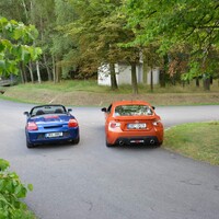 Máme tu japonku a tím pádem vyrážíme na opravdickou „touge“. Všímejte si, používám výraz „touge“ a to mám GT86 (japonsky hachiroku) doma pouhý týden. Víte, japonskou horskou okresku mají i v okolí Říčan u Prahy, jak prohlásil kamarád Honza Malina zvaný „Raspby“: „Hele Krabe, dáme si ještě tady jednu takovou pěknou touge“, ukazoval mi na mapách v mobilu jakousi lákavou klikatici. A dodal: „Já řídím Hachiroku a tobě házím klíčky od MR2“. A víte vy co? Klíčky od MR2 s dobře funkčním upgradovaným podvozkem nejsou vůbec k zahození. I Toyota MR2 se totiž v této společnosti vůbec neztratí. Najděte mi atraktivnější sportovní auto za ty peníze. A navíc s motorem uprostřed a vyvážením zatížení náprav takřka v ideálním poměru. Jiné takové vážně neexistuje. My jsme si dovolili srovnávat její jízdní vlastnosti i s původním Porsche Boxsterem 986. I když se vám výsledek může zdát poněkud subjektivně vybásněný majitelem MR2 k jejímu prospěchu, mně stačil jeden okamžik k tomu, abych se do jejích jízdních vlastností zamiloval. Jedna pasáž zatáček do kopce kdesi kousek za Ondřejovem mě vážně pro tento roadster získala nadobro. Vytáčím pěkně dvojku a přede mnou se objevuje zavřená pravá vlásenka. Trochu ubírám ani není potřeba brzdit, precizně stáčím předek do zatáčky a jakmile míjím apex zatáčky hned přidávám, co jen to jde.