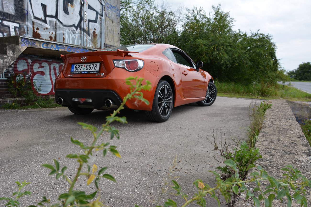 Všichni rádi kritizují její motor. Má jen 200 koní a hlavně pouze 205 newton metrů točivého momentu. A to ještě motor pracuje s dvěma pomyslnými vrcholy jinak docela lineární křivky průběhu výkonu. Zkrátka mezi třemi a čtyřmi, možná čtyřmi a půl tisíci otáčkami moc nejede. Jenže když píšu tohle, musím se zároveň hlasitě smát. Protože ten motor je ve skutečnosti boží. Výkon se dobře dávkuje, musím pracovat s převodovkou a ve vysokých otáčkách krásně zní i díky přívodu zvuku sání do kabiny nějakým tím soundaktorem. A ten zvuk je vážně spíš pěkně kovový, mechanický, víc od sání a motoru než od samotného výfuku. Když si na toto zvyknete, přijde vám řešení mnoha dnešních přeplňovaných sporťáků s klapkami ve výfucích a basovým bučením jako divadélko pro přihlouplé puberťáky. Zvuk motoru, byť se sériovým výfukem je krásně mechanický a opravdový. A opravdový je i průběh a dodávka výkonu, který na naší lesní „touge“ bohatě stačí. Zkrátka si sednu do GT86 a ono je to tiché, kulturní, pak najednou přijde zatáčka a směju se jako blbeček. Zatáčím a baví mě to. Všechna auta tady kamarádů jsou skvělá, ale jen Toyota GT86 umí jednu věc, kterou ty ostatní ne. Zadní kola mají přilnavost, ale takovou přesně akorát na to, aby se lehoulince ztrácela a já pod plynem zatáčel. Přilnavost zadní nápravy je přesně vyvážená tak, abych se těsně za zatáčkou začal hlasitě smát jako normální pacient Bohnic. To auto má jednu pro mě neocenitelnou vlastnost. Ono se zkrátka výborně řídí plynem a zadní náprava má naprogramovaný takový lehký elastický skluz. To auto mi hodně často na vyjížďce říká: