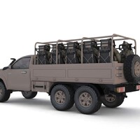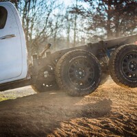 A tak dostal dvojici zadních náprav se stálým pohonem, vzadu kotoučové brzdy místo bubnových a k tomu odpružení vzduchovými měchy, které pomocí čidel automaticky upravují světlou výšku podle povahy okolního terénu. Žebřinový rám – prodloužený více než o metr – dostal vevařené trubkové výztuhy, aby byl ještě tužší, úpravy si vyžádala také převodovka, která přenáší výkon pomocí dvou kardanů (s uzamykatelným samosvorným diferenciálem) na zadní tuhé nápravy, na nichž je možné současně uzavřít oba nápravové diferenciály. Uzávěrka přední nápravy pak patří k volitelné výbavě. Auto se tedy může pohybovat v režimu 6×4,6x6 a 6x6 s redukcí. A proč to všechno? Protože nosnost 3 tuny, až 3,5 t na tažném zařízení a délka ložné plochy až 4 552 mm!