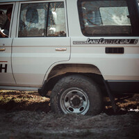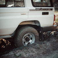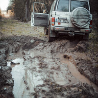 Což je zhruba popis událostí, které vedly k tomu, že jsem toho dne skončil s kromobyčejně zabahněnými botami a oblečením a Toyota dostala speciální hnědé maskovací zabarvení. Ona to zpočátku byla docela legrace, ale když jsem se dostal do bodu, ve kterém se nebohý automobil už nehnul ani o píď, byl jsem už veskrze nervózní. Pěší cesta v blátem promočených vycházkových botách do několik kilometrů vzdálené vsi pro traktor rozhodně nevypadala jako ideální program na zbytek dne. Navíc se pomalu začínaly prodlužovat stíny a představa, že se budu snažit vyhrabat Toyotu z bahna za tmy mi příliš na náladě nepřidávala.