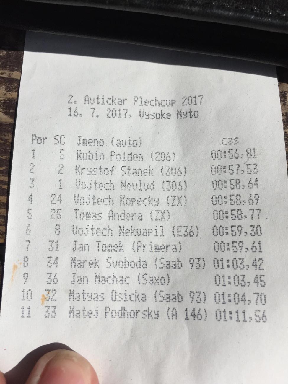 26. 7. 2017, 14:33Hoj! Dodal jsem fotku výsledků PlechCupu, snad máš radost ;-)