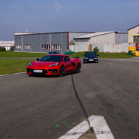 Někde u Březové se ale nebe rozestoupilo a na okruh jsem už dorazil v dobré náladě i díky nebeskému komfortu mé milované limuzíny. V době příjezdu už bylo závodění v plném proudu a mně hned padla do oka červená Corvette C8. Je pravda, že majitel ji šetřil, ale já proto měl pochopení, taky bych to auto nechtěl rozbít. A pohled to byl i tak pěkný.