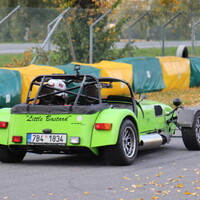 Vzápětí se má pozornost přesunula na neméně zajímavý Caterham 7, kterému naopak jeho majitel do těla dával poměrně řádně. Dokonce tolik, že ho provozní tratě musel vybídnout ke krocení, prý dělal moc velký hluk. Zvláštní, nám to nikomu nevadilo. Naopak, řev motoru dotvářel fascinující dojem z této nepochopitelně rychle letící a neuvěřitelně mrštné cihly.