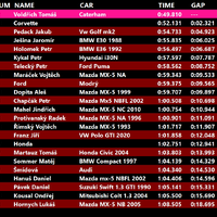 24. 10. 2022, 14:28Ahoj, nebyl by k dispozici záznam (tabulka) z časomíry zajížděných časů. V textu je o tom spoustu zmínek, ale ve fotkách jsem nic nenašel. Účastnilo se spoustu zajímavých kár, tak je co porovnávat! .-) Třeba jak si vedla Corveta na motokárové okruhu proti E30, Catu apod.