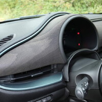 K vrcholné verzi Giorgio Armani patří kromě originální barevnosti i palubní deska obložená laserem vyřezávaným dřevem. Tuto informaci jsem si musela najít ve specifikacích, neboť jsem sama nebyla schopná materiál identifikovat. Jeho vzor sice dřevo připomíná, na dotek však působí spíš měkce, trochu jako tužší textilie. S okolní zelení si perfektně rozumí a celkový dojem z interiéru je přesně takový, jaký si ve stylovém autě člověk představuje. Na všechno se hezky kouká a čas se tu tráví velmi příjemně, hravý šmrnc dodávají obrázky v úložných přihrádkách.