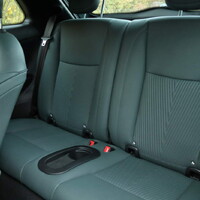 Podobnou šedozelenou barvu dostal i interiér s koženkovými sedadly. Vzhledem k aktuálně panujícímu počasí nedokážu zhodnotit, zda by se mi v nich v horku potilo pozadí, teď mne zajímala spíš funkce vyhřívání, která samozřejmě nechybí na předních sedačkách ani na volantu. I když nejde o pravou kůži, díky efektnímu prošívání a logu vyraženému do hlavových opěrek působí dostatečně prémiově. Na lehce „záchodový” vyšší posez si člověk za chvíli zvykne a v přední části je dostatek místa, aby se řidič a spolujezdec nemuseli přetlačovat lokty.
