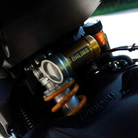 Vidlice Showa i zadní tlumič Öhlins jsou plně nastavitelné a moc příjemně dimenzované. Zde se skutečně nešetřilo. Naprosto perfektní kombinace, kdy není problém se s chutí a lehkostí vrhnout do zatáček a stejně tak si dopřát maximální pocit jistoty a stability ve vyšších rychlostech. I cestou skrz zatáčku je možné se rozmyslet a dodatečně si poupravit stopu. Naprosto snadně a přirozeně. Žeru to. Na pár horizontech se mi dokonce předek odlepil kousek od země. Jeho dosednutí však bylo maximálně hladké, bez sebemenšího kmitu, či nejistoty v řidítkách. Přitom jsem při prozkoumávání motorky druhý den zjistil, že vlastně ani nemá tlumič řízení. Heh, celkem překvapení. S dostatečně vypiplaným podvozkem ani není potřeba, snad alespoň ve střední třídě.