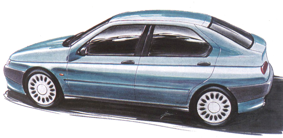 Podívejte se však prosím na následující nákres a řekněte mi, kde se na cestě mezi papírem a skutečným autem stala chyba. Vždyť na tom obrázku vypadá 146 tak krásně. No co, třeba si časem zvyknu.