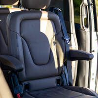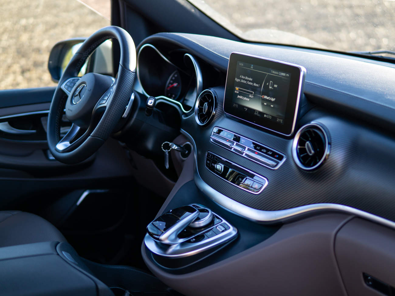 Pozastavím se však na chvilku v interiéru, protože interiér Véčka je bez přehánění fantastický a jsem udiven, že tohle je původně pracovní stroj. Dílenské zpracování je bezchybné a soupeřit s ním může v kategorii dodávek snad jen VW T6. Mercedes však zasazuje VW smrtící úder v oblasti celkového ztvárnění a použitých materiálů. Na tohle T6 nemá odpověď. Karbonový dekor se skutečně tváří jako karbon, každičký čudlík má perfektní chod a krásné zpracování. Tenhle interiér by neudělal ostudu ani luxusnímu sedanu s hvězdou na masce, a to je myslím všeříkající. Dokonalý dojem podtrhují i skvělé sedačky, které jsou nadmíru pohodlné a člověk v nich bez úhony přežije i cestu napříč Evropou. A kdyby vás to zajímalo, umí vyhřívat i odvětrávat zároveň, což je poměrně užitečná funkce, která sice možná zní takhle od stolu divně, ale v reálu je kupodivu velice příjemná. Opomenout nesmím ani vynikající audiosystém Burmester, pro něhož je cokoli než bezztrátová nahrávka urážkou. Z Véčka umí udělat regulérní koncertní síň. Fakt, že sedíte v dodávce, prozrazuje snad jen posez, který je výrazně vyšší a vzpřímenější, než je obvyklé u běžného osobáku či SUV. Místa je samozřejmě dostatek ve všech směrech a v každé řadě. Testovaný kousek byl v konfiguraci 2 plus 2 plus 2, takže každý cestující má k dispozici samostatné a bohatě dimenzované křeslo. K interiéru mám prakticky jen dvě výtky. Tou první je chybějící bezklíčový vstup (nepovedlo se mi jej najít ani v konfigurátoru) a infotainment Command. Ne, že by byl špatný, nebo nevyhovující. Jen když si člověk jednou vyzkouší nový MBUX, už se mu nechce vracet k tomu staršímu. Ale jsou to jen malé pihy na kráse jinak skvělého vnitřku.
