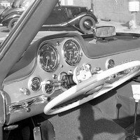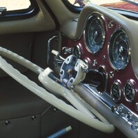 Legendární Gullwing na první pohled uchvátí spíše vyklápěcími dveřmi a krásnou siluetou s dlouhou přídí. I v interiéru je na co se dívat a tak zůstává jednoduchý bílý volant často stranou zájmu. To je ale velká škoda. Nejen, že jeho subtilní filigránský design krásně koresponduje s interiérem a celým vozem, ale dokonce disponoval šikovnou funkcí – šlo ho sklopit, aby při nastupování a vystupování nepřekážel řidičovým kolenům.