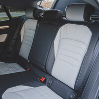 S vlajkovou lodí z Boleslavi má společné jak dobré vlastnosti, tak i přinejmenším jednu nevýhodu. Mezi nepopiratelné výhody patří obrovský prostor na zadních sedadlech, zejména pokud jde o nohy. Místo na hlavu už může být poněkud na hraně, pokud měříte hodně přes metr osmdesát, ale na nohy bude mít přebytek prostoru snad každý. Je to doopravdy k něčemu užitečné? Po pravdě, nejsem si tak docela jistý – mám podezření, že hlavním účelem prodlouženého rozvoru je zde to, aby Arteon působil štíhlejší a delší. Ale přinejmenším vám nebudou děti v sedačkách kopat do opěradel sedadla, protože na něj jednoduše nedosáhnou.