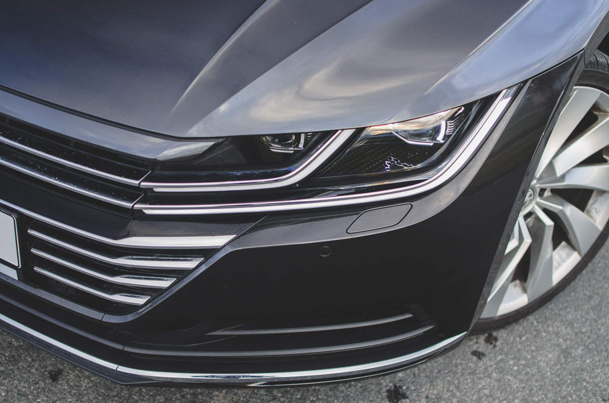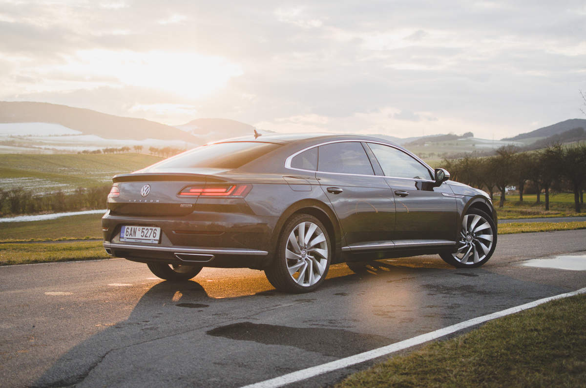 Arteon sice můžete cynicky považovat za pouhého přejmenovaného nástupce Passatu CC, ale výše zmíněnou touhu naplňuje naprosto perfektně. Jakkoliv má s koncernovým sourozencem obrovské množství společných prvků, na pohled byste nejspíše vůbec neřekli, že to je vlastně přepracovaný Passat. Je dlouhý, nízký a elegantně štíhlý. Zvláště působivě vypadá ve žlutozlaté metalíze Kurkuma, kterou nejspíše znáte z reklam a billboardů, ale i v šedé metalíze Mangan našeho testovaného exempláře je nepřehlédnutelný – a možná o to víc elegantní. Ať si vyberete Arteon v jakékoliv barvě, nejspíš se na něj budete zálibně ohlížet ještě dlouho.