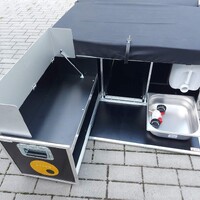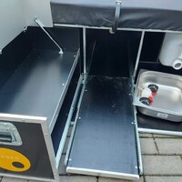 Vestavba je třešnička na dortu: tři skříňky, dřez, kanystr a matrace za kilčo. Tak se to dělá. To čumíte chlapi od Egoé Nest, co?