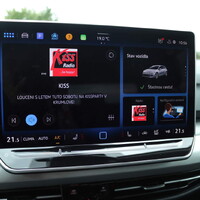 Úplně nový infotainment s 12,9palcovou obrazovkou je „vyléčen” z dřívějších neduhů – nestability i pomalých reakcí – a nyní běhá jako na drátkách. Ovládání je logické a tak pohodlné, jak jen to bez tlačítek jde. Do horní lišty si můžete umístit oblíbené funkce a zajistit si k nim rychlejší přístup, ovladače klimatizace jsou na spodní liště přítomny neustále a není třeba je vyvolávat kliknutím navíc či opouštěním právě otevřené aplikace.