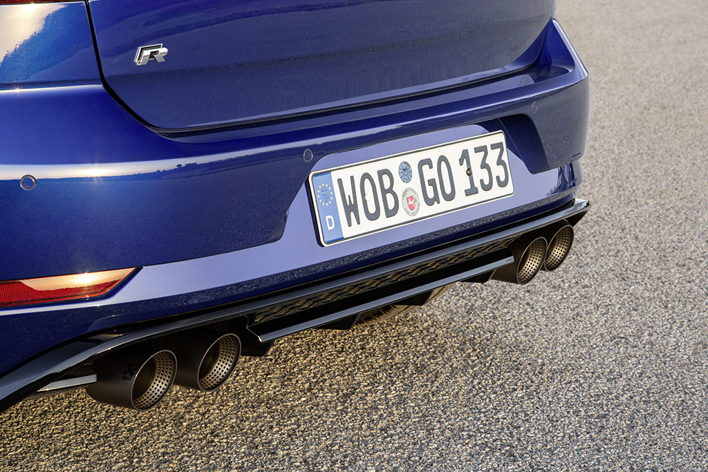 Jakousi třešničkou na Golfu (hehe), se potom stává zbrusu nový výfuk. Celotitanový systém vyvinula pro Volkswagen firma Akrapovič a díky použitému materiálu je o 7 kilogramů lehčí, než standard. Drasticky se samozřejmě zlepší zvuk, jehož rozsah by se měl pohybovat od zlostného vrčení až po hurónský řev. Výfuk je možné objednat pouze na Golf R hatchback a přijde na mastných 93 400 korun.