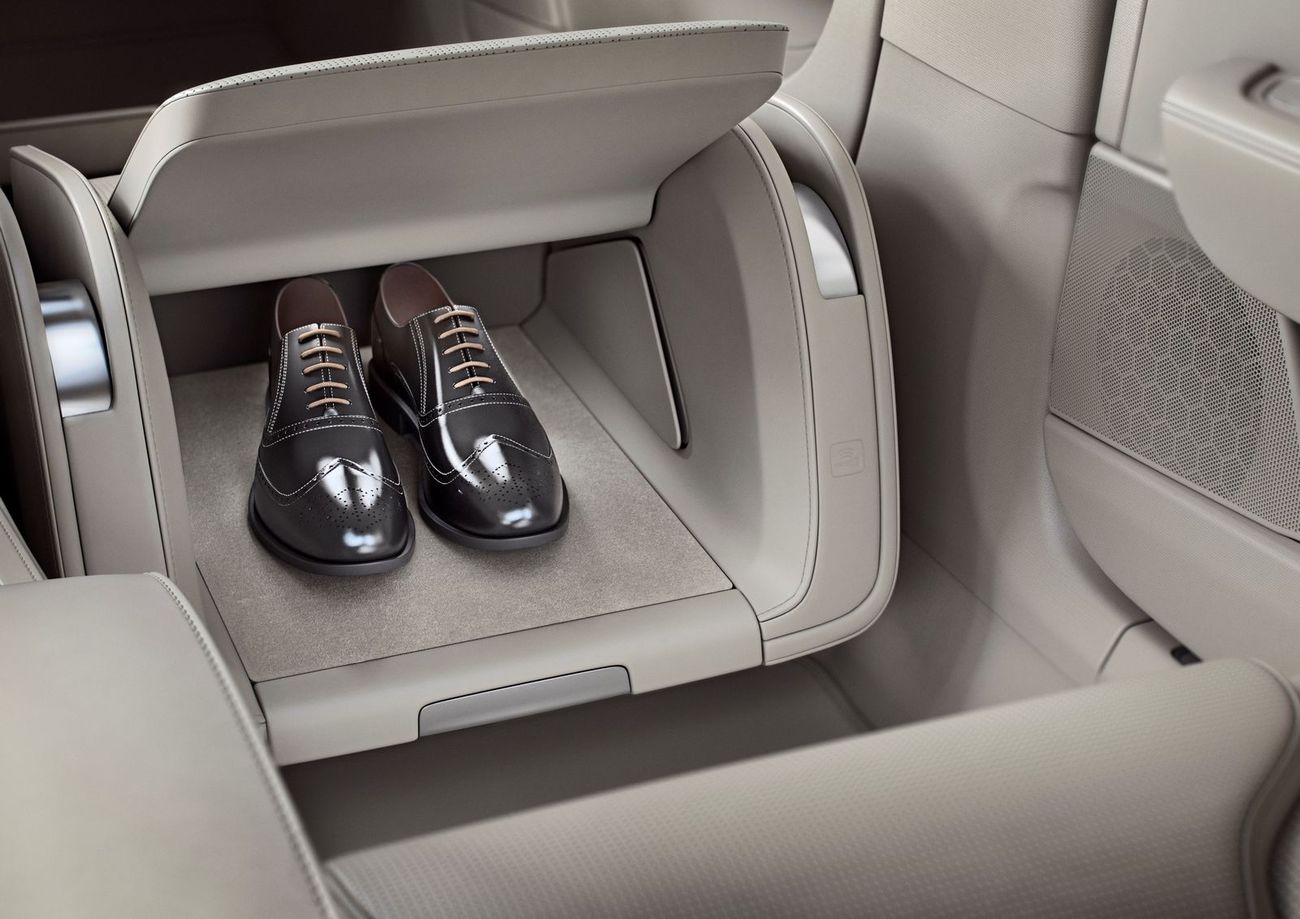 Prakticky všechny aspekty S90 Excelence jsou vpravdě úchvatné. Prodloužená elegantní karoserie skrývá prostorný interiér z nejvybranějších materiálů, ale přitom to celé působí jaksi mírným, střízlivým a ne zbytečně opulentním dojmem. Má to ale i jednu drobnou podivnost. S90 Excelence je totiž auto pro tři. Dvě oddělená sedadla vzadu doplňuje už jen sedadlo řidiče. A sedadlo spolujezdce? To muselo ustoupit botníku.