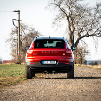 Červené SUV jen s jedním motorem je pak ukázkou, že to funguje hned ze startu. Čekal jsem projev blízký jednomotorovým evropským konkurentům, leč nedá se to srovnat. V číslech vidím 230 koní, ale auto se pohybuje svižně a agilně, jako by jich bylo víc. Byl jsem připravený na unylý pocit z akcelerace sice silného ale těžkého auta. Namísto toho se pod nátlakem mé nohy pohybovalo malé a vysoké Volvo čiperně od světel ke světlům a přitom bylo příkladně tiché a pohotové.