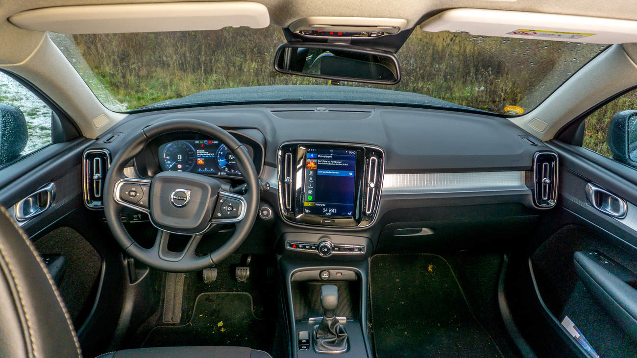 Pojďme si raději sednout dovnitř. Díky tomu, že testovaná XC40 neoplývá žádnou zvláštní výbavou, tak se vevnitř nedočkáme žádných výrazných barev, ani speciálních čalounění, ale zároveň se v něm nedočkáme pocitu ‚chudého příbuzného‘, který by se dal očekávat. Přístrojový štít je plně digitální a díky možnostem přizpůsobení jeho zobrazení si zaslouží velkou pochvalu. Stejně tak zaslouží pochvalu i velký displej, který kromě ovládání hudby slouží i k nastavení klimatizace. Díky jednoduchosti zobrazení a ovládání člověk brzo zapomene na nějaké točení kolečky, či táhly. Tohle se vážně povedlo. Mimo displejů je povedený i zbytek interiéru. Tolik odkládacích prostorů, které se dají doopravdy použít a nejsou dobré jen na fotky do katalogu, to se jen tak nevidí. Stejně tak i sedačky jsou dostatečně pohodlné i na delší cesty. A věřte tomu, že moje přelomená páteř v tomhle nastavuje laťku celkem vysoko.