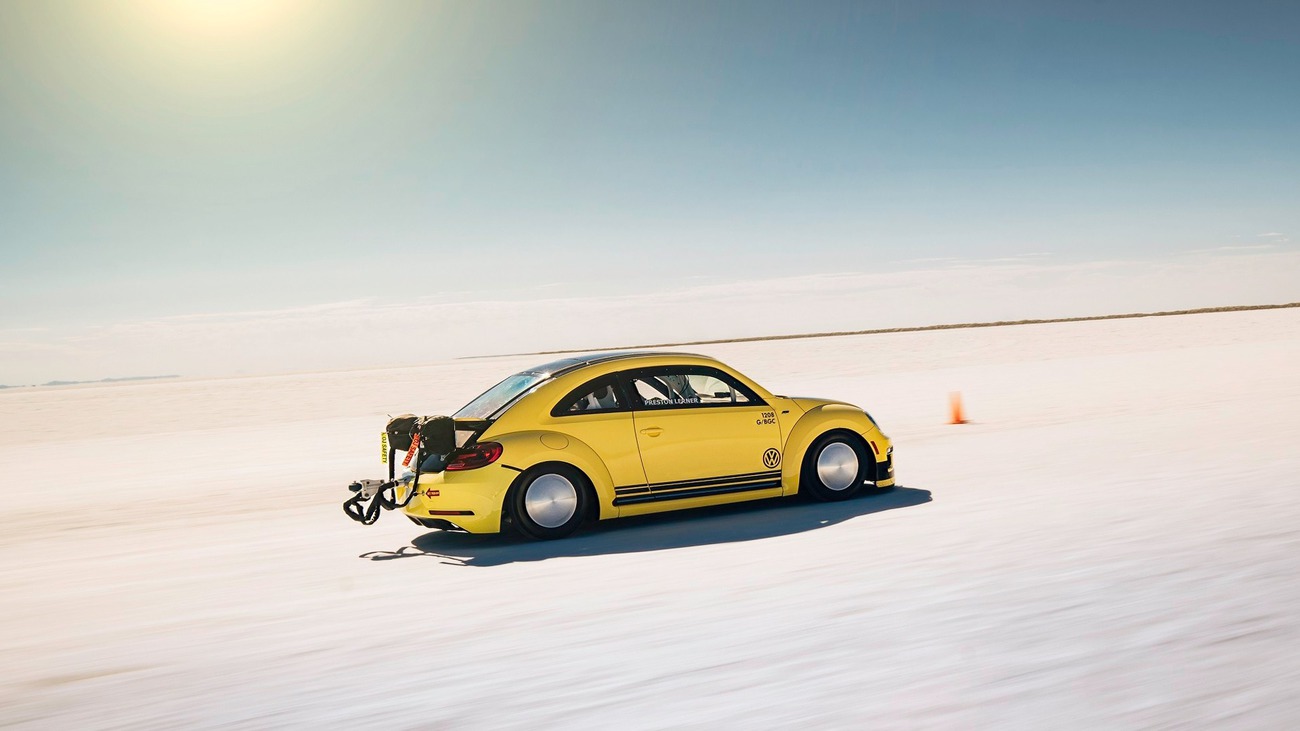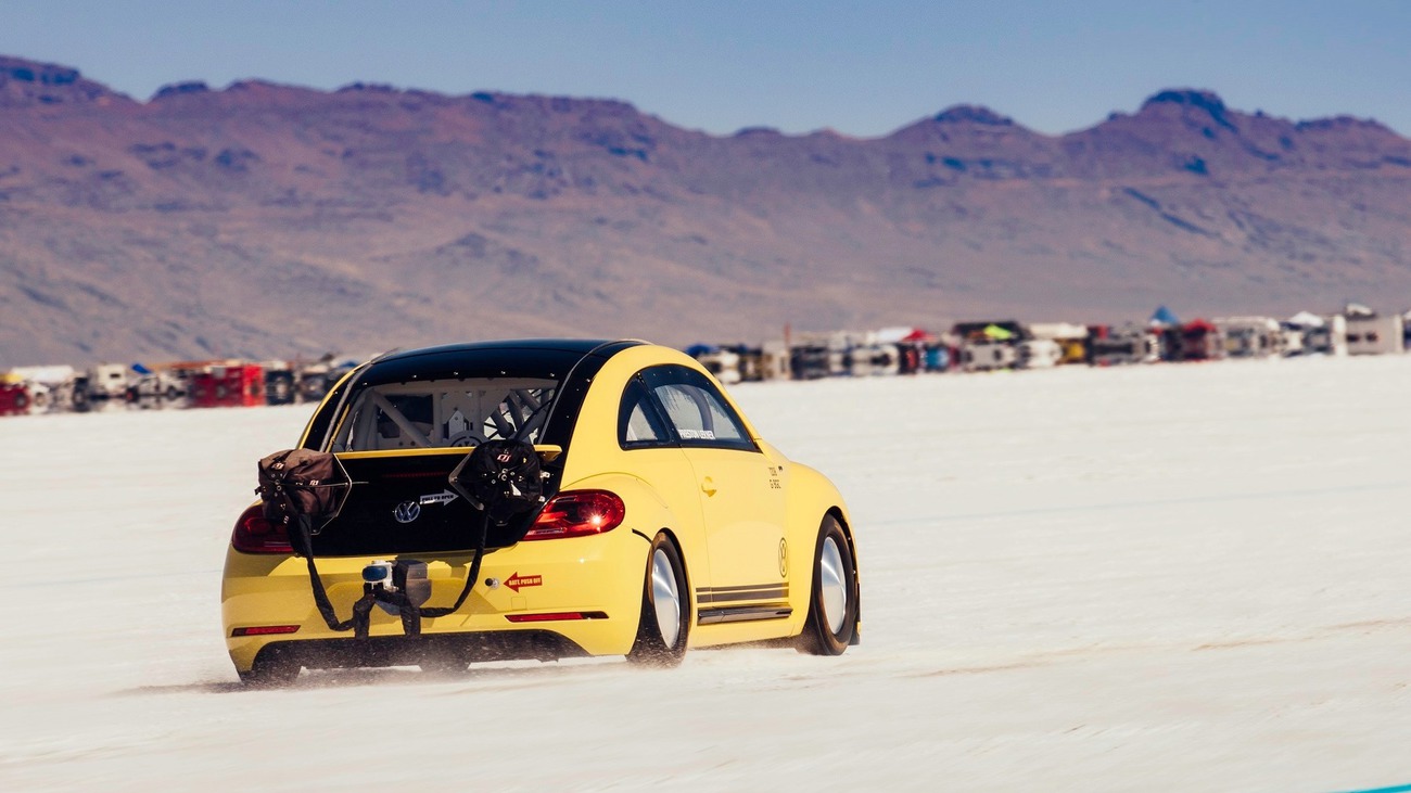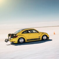 Potom už nezbývalo než vzít Beetla na solnou pláň Bonneville, posadit za volant automobilového novináře Prestona Lernera a ukázat mu, kde je plyn. Výsledná oficiálně zaznamenaná rychlost činí 205.1 mil za hodinu, což je na naše 330.1 kilometrů za hodinu. To je solidní výsledek a také překonání rekordu z roku 1988, kdy tehdy ještě vzduchem chlazený brouk zmáknul 175 mil za hodinu (281 km/h). Jsme si docela dobře jisti, že nový rekord už klasický „vzducháč“ nepřekoná.