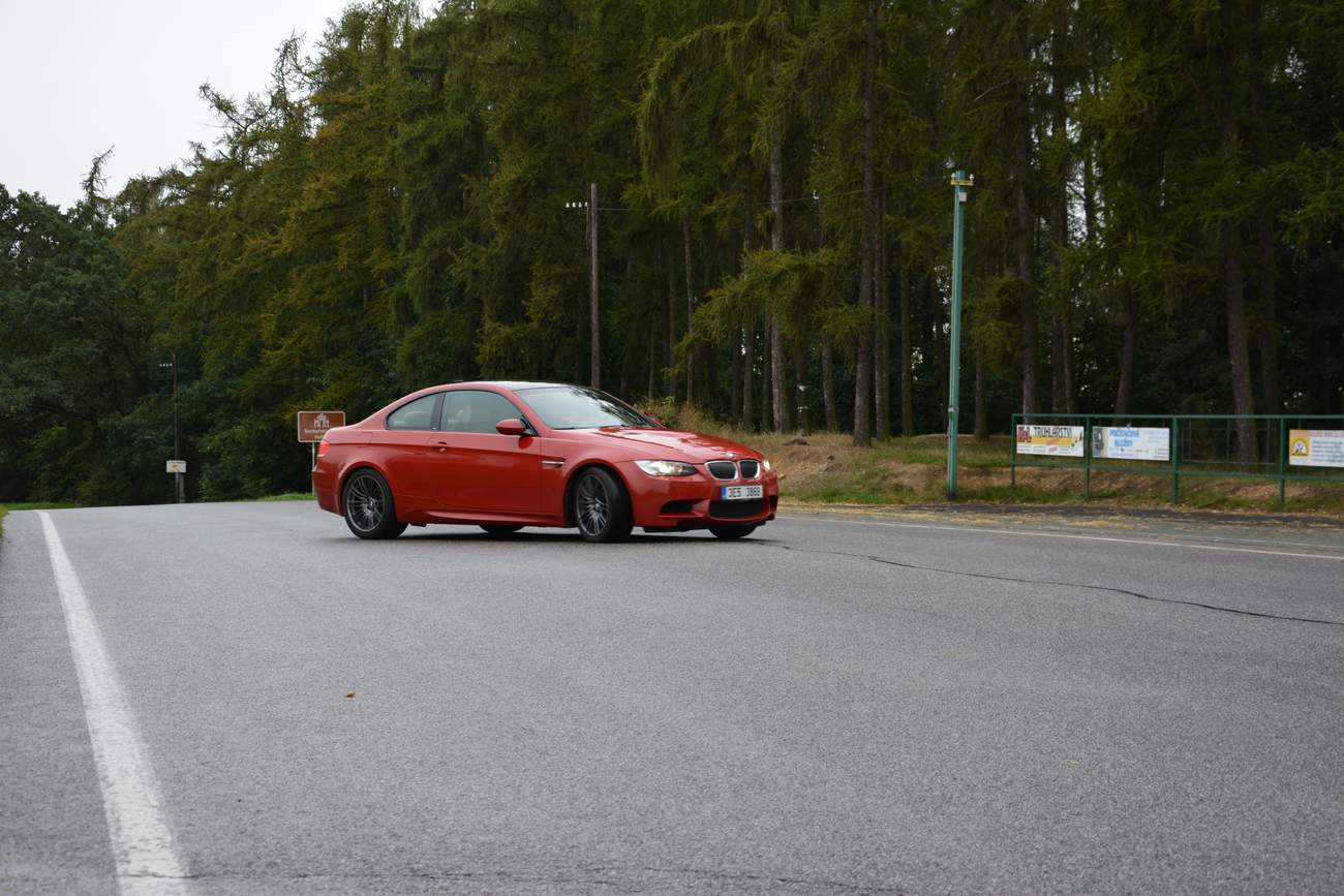 Jenže Krab je nakonec posera a nevypne stabilizaci, protože se bojí, že v tom nejvyšším spektru otáček, při plynu zamáčknutém úplně do koberečku, přestane mít absolutní kontrolu nad tím co vlastně dělá. Na setkání s tímto extra potentním BMW M3 jsem přijel totiž s jinou BMW M3. S generací E46, která má těch koní taky docela dost. Vždyť víte, pokud jste si přečetli test, pěl jsem na něj ódy. V kontextu našeho tématu je právě toto auto naprosto ideální. Na vlhku dokážu díky samosvoru pracovat s jeho i tak skvělým výkonem celkem efektivně a zkrátka jsme si spolu hodně sedli. Můžeme si myslet, že i to je na veřejné silnici příliš rychlé. Nakonec víte, že jsem psal, že běžná auta na okresce jde snadno dojíždět jako statické kuželky, nicméně ta kontrola nad autem je vynikající. Zkrátka starou emtrojku ještě stíhám perfektně kontrolovat i v pořádném tempu. Tu novou, dopovanou G power oranžovým zázrakem už moc ne, obávám sse.