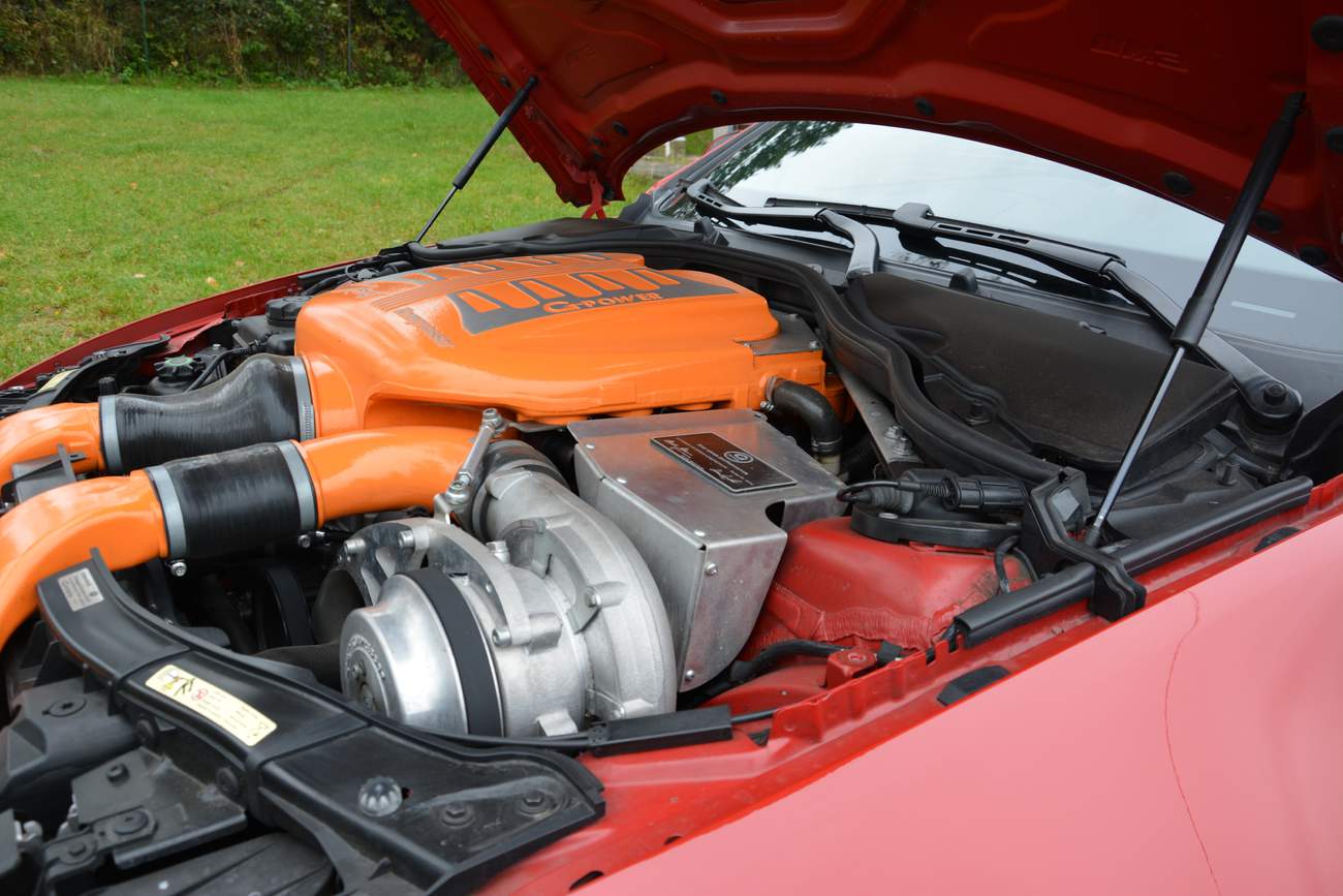 Mačkám startovací tlačítko BMW M3 předchozí generace a osmiválec se rychle ustálí na dravém, ale kultivovaně jemném volnoběhu. Chápejte, tohle není žádný big block. Je to sofistikovaný evropský motor. Rozjíždím se a už od nižších otáček začne lehoulince kvílet kompresor. A já cítím pod zadkem velkou továrnu. Tohle je fabrika na likvidaci zadních širokých gum. A protože je zrovna docela vlhko, začínám mít trochu zpocenější dlaně. Na trojku se za cedulí konce vesnice osmělím trošku šlápnout na plyn. Vzzhhíííí, vyje a kvílí kompresor spolu s utlumeným jemným „Ví- ejt“ soundtrackem a já jsem tlačen pěkně příjemně do zad anatomických emkových sedaček. Přidávám ještě trošku víc a najednou se zničehonic zadní široká kola utrhnou, stabilizace zabliká, auto se otřese a já trošičku zahnědnu v trenkách. Do háje, na trojku by to přece mělo držet, nebo ne? Ne, nedrží to. Pět set dvacet koní je prostě monstrózní porce. S tímhle BMW jsem jel už dříve a to bylo v létě na suchu. Na suchu ten výkon vážně na silnici přenést jde. Dokonce jsem si na jedné velmi široké státovce začal říkat, jestli náhodou přes pět set koní nevypadá jinak. Nevypadá. Pohled na neslušná čísla rychloměru říkal jediné. Tahle generace BMW M3 dokonale maskuje rychlost, kterou jedete. Uberu plyn a motor si krásně odfoukne. Je to čirá radost, ale já se neumím zbavit dojmu, jestli nakonec atmosférická varianta standartní V8 nestačí. Do háje, vždyť ta má výkon 420 koní a dosahuje přes osm tisíc otáček za minutu. Kdo by potřeboval kompresor? Kamarád Michal to tak už koupil, ale původní majitel zavolal do Německa do G-power proto, aby se odlišil. V Klubu sportovních aut Nicolaose Seizise bylo těch majitelů „obyčejných“ M3 příliš mnoho. A protože pánové si rádi porovnávají pindíky, tak existují firmy jako je G-power. Nabízí technicky precizní a krásné řešení jak se odlišit od běžné sportovní konfekce. Nedělám si z toho jenom legraci, to provedení od G-poweru upřímně obdivuji. Je to nádherná práce a všechny díly jsou skvěle zpracované. Je radost podívat se pod kapotu.