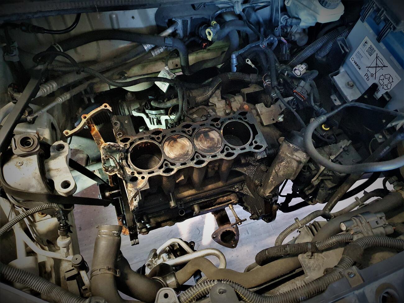 Po rozebrání části motoru ale přišlo zděšení a telefonát, že s opravou tohoto motoru nechtějí nic mít. Motor už byl evidentně několikrát amatérsky opravovaný, černý silikon kryl potencionální místa průsaků jak zvenku, tak bohužel i zevnitř. Těsnění pod hlavou nechybělo, ale pro jistotu tam byla hned dvě na sobě. Víc opravdu někdy neznamená líp. Sem tam chyběl šroub a další drobnosti. Vlastně se divili, že to vůbec jezdilo. Když jsem pak prozradil, že auto bylo koupeno jen o pár dní dříve, vše se vyjasnilo. Prostě provizorně „zalepený“ motor, aby to chvíli jezdilo a na předváděcí jízdu plus pár kratších cest po městě to stačilo. Když v budících ani není teplota chladicí kapaliny, není jak si zvýšené teploty všimnout. Dálnice má ale na motor jiné nároky.