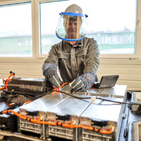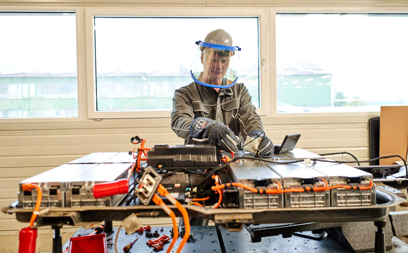 Díky modulárnímu systému baterií není při poškození celé baterie či samotného článku třeba vyměnit celou baterii, ale stačí vyměnit pouze jednotlivou součástku, třeba jen onen ochranný obal bateriových modulů. Po deaktivaci vysokonapěťového systému se tak celý akumulátor vyndá zespod vozu a je přesunut na bezpečné pracoviště, kde se může s baterií pracovat. Sundat kryt baterie taky není úplně jednoduchá záležitost – celý proces se musí dělat ručně, aby se nestrhl žádný závit, a je třeba postupovat křížem, aby nedošlo k poškození těsnění. Jednotlivé moduly se mění pomocí zvedáku, přeci jen nejsou úplně lehké a ještě je drží teplovodivá pasta. Po očištění místa pod modulem je třeba ono místo pořádně očistit od zbytků staré pasty a nanést novou pomocí speciální šablony. Ona teplovodivá pasta je docela důležitá věc, neboť zajišťuje správné teploty v baterii, aby mohla stále podávat maximální možný výkon nejen při jízdě, ale i při nabíjení. Nový modul baterie je třeba před montáží vybalancovat s ostatními, neboť přijde nabitý pouze na 25 procent, a je důležité, aby byl přizpůsoben ostatním modulům v baterii pro správnou funkčnost a výdrž. Poté se může nový modul opět pomocí zvedáku uložit na své místo a baterie se znovu může uzavřít.