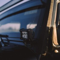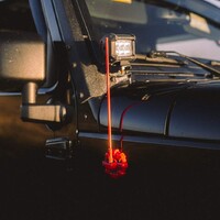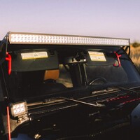 Držák světelné rampy a reflektorů u předního rámu okna zase šikovně využívá uchycení zrcátek a rámu předního skla. Takže se opět obejde bez jakéhokoli vrtání či lepení, dokonce i na kabely je tu příhodná spára – prostě “plug&play”. Z věcí, co se jinde složitě plánují Jeep dělá záležitost, co se dá zvládnout během reklamní pauzy při baseballu s plechovkou piva v ruce. To mě baví.