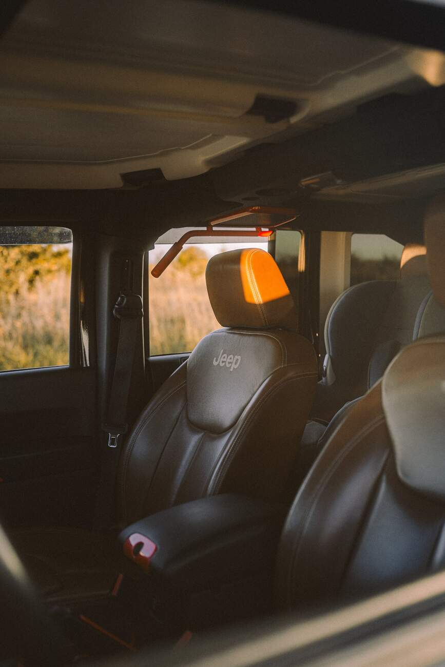 Spokojený jsem byl i s pěknými hnědými koženými křesly, jen můj jemnocit malinko trpěl tím, jak se jejich odstín tloukl s červenými akcenty. Jak říkám – osobně bych při ladění svého Jeepu šel jinou, decentnější cestou, ale zároveň se mi líbí, že se výrobci doplňků a automobilka samotná nesnaží nijak auditovat vkus kupujících a nechají je si vůz snadno přizpůsobit.