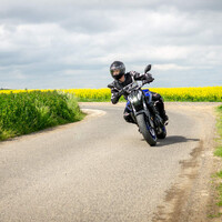 Vyrážím na cestu a konečně se dostáváme k motoru. Je to řadový dvouválec s crossplane klikovkou, což znamená přesazení ojničních čepů o 90°. Technologie, kterou si Yamaha přinesla z MotoGP, slibuje lepší dávkovatelnost kroutícího momentu. To platí pro čtyřválec v R1, jenže tady nám ho polovina chybí. O tomhle motoru se naopak dá dočíst, že je sice konstrukcí řadovej, ale projevem přípomíná spíš véčko. Což se teda trochu tluče s tím prvním tvrzením, nebo ne? V prvních kilometrech poskakování po městě, v tom pořád hledám to véčko a něco se mi na tom nezdá. Po nutné troše utrpení v hustém provozu, se konečně dostávám na okresky a začíná výlet na druhou půlku otáčkoměru. No tohle mě ukrutně baví, mám radši druhou půlku, i motor ji má radši, všichni mají radost. Po tomhle zjištění, už asi pokaždé, když se nacházím pod čtyřmi tisíci otáček a mám potřebu akcelerovat, prostě shazuju kvalt. Ne že by to bylo úplně nutné, ale když ono je to tak snadné a je z toho potom ta radost. Hle a jsme doma, pravda je někde uprostřed. Ten spodek je poněkud civilizovanější, ale vršek zase mnohem živější. Na mě to působí spíš jako projev bližší řadě než V? Dovedu si moc dobře představit, že někdo, komu je bližší řadové uspořádání, to vnímá přesně naopak.