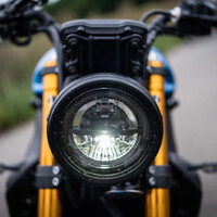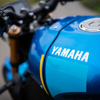Nemůžete mít retro styling bez kulatého předního světla, s nímž se v předchozí generaci výborně pároval i kulatý budík. Nyni ho vystřídal minimalistický obdélníček, což je trochu škoda, tady se mi víc líbila ta předchozí varianta. Zlatá USD vidlice, tvarovaná nádrž s nádechy sání po stranách, nízké sedlo s hrbem vzadu, kryt pod sedlem uchycený dzus sponkou, všechno hezky dokresluje ten retro sportovní design. Taky to dobře odvádí pozornost od tlustého rámu, který ve mě při bližším ohledání budí dojem, že by na něm snad taky měla viset kapota. Na rozdíl od Tuona je tu aspoň v černém provedení, a tak to není tolik do očí bijící. Jak už jsem říkal, je tam spousta hezkých detailů, které vás úspěšně svedou ze stopy. Výfuk se Yamaze podařilo vecpat dospod. Docela se mi to řešení líbí i celkem hezky, na sériové poměry, zní, avšak mezi motorkáři tolik oblíbená pouhá výměna koncovky za stylovější a hlasitější se dost zkomplikuje. Výměna celého kompletu i se svody bude drahá a řezání někde v polovině opruz. Tím si teď ale nebudeme kazit zážitek.