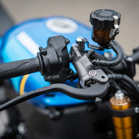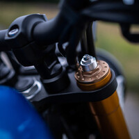 Motor narostl o pár kubíků na konečnou hodnotu 889 ccm. To mimoděk přineslo nějakých pět koní navíc, na zaokrouhlených sto devatenáct, a k tomu dostatek krouťáku, který je dostupný vlastně skoro kdykoli a kdekoli. Stačí nad čtyřmi tisíci otočit heftem a váš zadek se zarazí do té boule na sedle. Najednou se nacházíte v takové dost zalehnuté pozici, okolní krajina se rozmazává a vy si připadáte skutečně jako retro závodník. Není ani úplně potřeba to tahat až k omezovači, jede to pořád. V tom nejostřejším módu je projev motoru vzdáleně povědomý, přesto překvapivě zábavný. Jako by si můj Street po ránu dal kafe nebo něco ostřejšího. Tohle mě baví. Po čtyřech tisících otáčky zezelenají, tím vám quickshifter sděluje, že je připraven konat. Žlutá pak signalizuje nejvyšší čas k přeřazení. Na konec převodovky dojedete již okolo 230 km/h. Trochu dřív, než bych čekal, ale to je stejně jedno, bez kapoty stačí.
