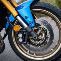 V rozletu mě pak krotí moje oblíbená stará známá, radiální pumpa Brembo. Hadice již klasické, bez opletu, a třmeny sice radiální, leč postrádající ono pozlátko a lascivní logo. Přesto je dávkování i účinek parádní a návykový. A stačí k tomu pohlazení. Ach jo, to si snad budu muset pořídit i na svoje. Celá tahle kombinace veselého motoru a účinných brzd na mě má špatný vliv. Motivuje mě k tomu, abych jel rychleji než obvykle.