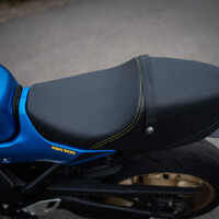 I když techničák tvrdí opak, není to zrovna motorka pro dva lidi. Stupačky jsou dost blízko sebe, a tak vám spolujezdkyně doslova šlape na paty. Navíc tam nemá ten bobek, o který by se opřela stejně jako vy, jakmile konečně otevřete trojici škrtících klapek naplno. Takže její přežití závisí jen na její vůli a síle stisku. Navíc pokud byste nabyli vizuálního dojmu, že její čast sedla je pohodlnější, nezoufejte, není tomu tak.