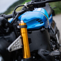 Usedám, na zem to mám tak akorát, trochu na špičkách, pro mě standard. Okamžitě však začínám tušit jiný problém; stylové retro sedlo není zrovna pohodlné a to nemám nijak rozmazlený zadek. Yamaha (zatím) jinou možnost nenabízí, naštěstí dnes není takový problém si sedlo nechat přešít na zakázku přesně dle vašich představ. V úsporném menu mám k dispozici čtyři režimy motoru, a protože se nacházíme ve vodách japonského výrobce, jejich názvy jsou skutečně grafomansky kreativní: 1-2-3-4. Líbí se mi ale jejich naladění, jsou mezi nimi totiž vážně cítit rozdíly. Čtyřka je nejvíc uškrcená, doslova máte odkrojený solidní kus (třetinu?) výkonu, což se může hodit třeba v dešti. Jednička je zase naopak “úplně nejvíc voheň”, kdy každé zatáhnutí skutečně pocítíte. I přesto jde v tomto nastavení otevřít plyn s trochou citu naprosto plynule a bez cukání. Tady mají ten elektronický plyn taky správně. Při vyzvedávání motorky je zrovna všude mokro, jež přiživují občasné přeháňky, a tak řadím jedničku a začínám svou cestu na trojku. Po přejetí na sucho, většina testu za jedna s rohlíkem od ucha k uchu. Snad jen občas přes město, může být ta dvojka trochu příjemnější.