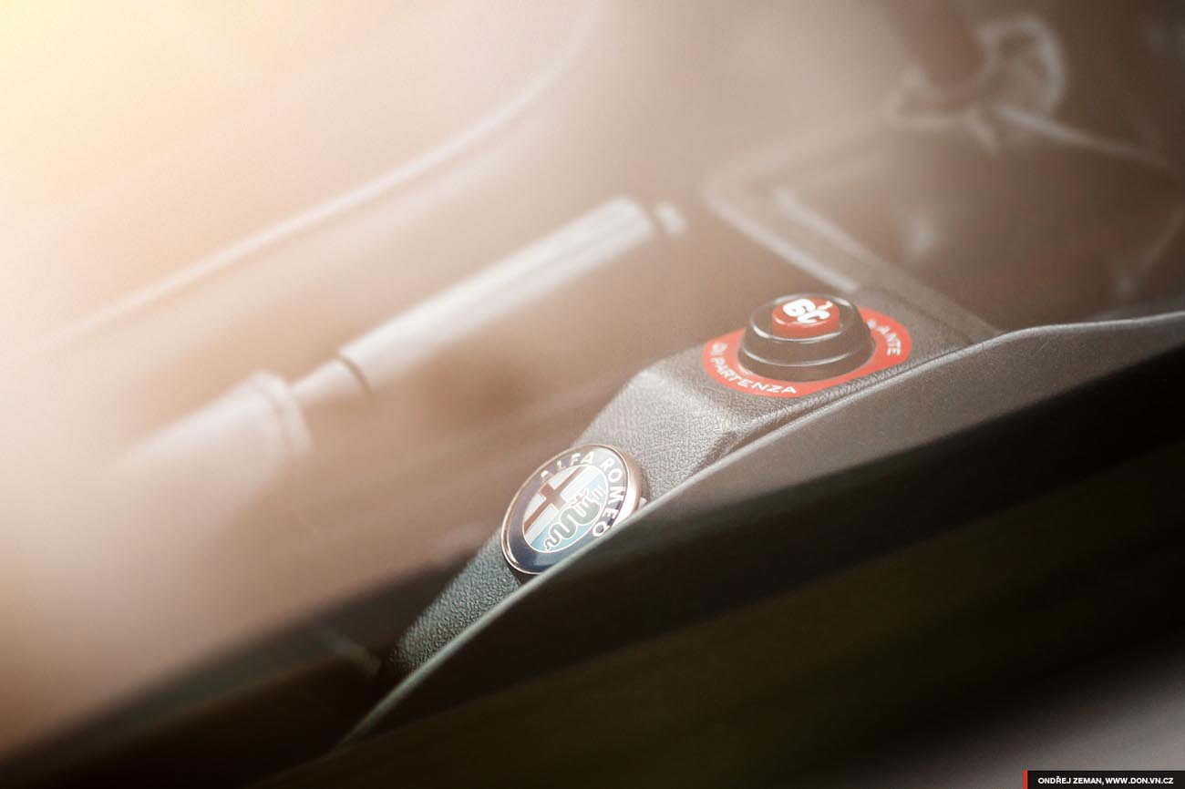 Hlavně to červené tlačítko, kterým se kupodivu neodpaluje jaderná hlavice… i když jak se to vezme. Třílitr se totiž ihned po napumpování první dávky naturaly do spalovacích komor projeví jako solidní bestie a celý vůz prostoupí hutná dávka vibrací. A zvuku.. prvotřídního zvuku.. Kdyby existovalo něco jako akustický trh, prodával by se zvuk třílitrového Bussa jako velmi drahá exportní komodita pro smetánku. Chci zmáčknout spojku a zařadit, ale něco je špatně. Pokud vám někdo bude tvrdit, že pedál v 350Z nebo 911 je tuhý, nevěřte mu. Ve zmíněných vozech to je totiž spoječka pro mamánky. Alfice má spojku tvrdou jako kámen a zamáčknout ji do podlahy vyžaduje razanci poctivého pštrosího kopance. Jenže dřina nekončí. Při vymotávání se z benzínky málem trefím kontejnery pro tříděný odpad – točit s miniaturním volantem bez posilovače není nic pro mé imitace rukou. A já se už vůbec nedivím, že Tomáš vypadá tak trochu jako napodobenina mladého Arnolda. Kašlete na fitko, kupte si GTV6, muskulatura zaručena.