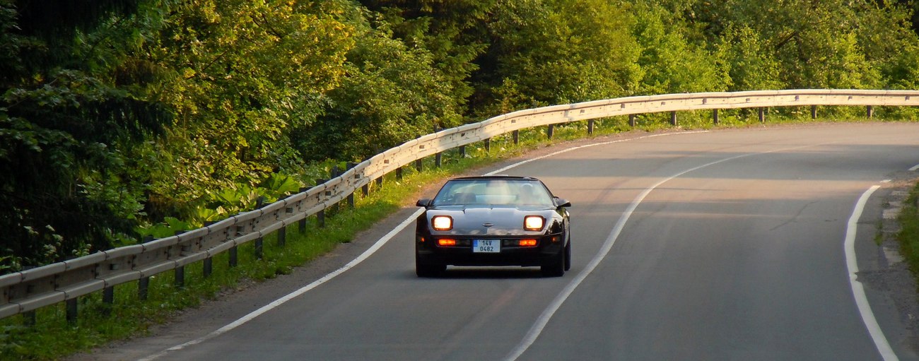 Je čas vyrazit. Mozek si vzpomíná, že v černé C4 jezdil v Beverly Hills Steve Sanders a já mu vždycky strašně záviděl. Takže si vlastně plním dětský sen. Volič čtyřstupňové automatické převodovky s rychloběhem přesouvám do D a Vette se za distingovaného bublání dá do pohybu, což vedle stojícího hiphopera přinutí opustit běžný slovník jistě plný akademických frází a vykřiknout cosi jako “p*čo ferary!!” Na tvář se stěhuje lehký úsměv. Zapomněl jsem zapnout světla. Uvyklý na obrovské plácačky Miaty NA zabírající půlku zorného pole čekám něco podobného, ale vyskočí jen takové dva malé bonbónky a dostavuje se úsměv číslo dva. Plout ve Vette běžným provozem je strašná pohoda a navíc jste při tom stylovější, než všichni okolo. Je hezky a chybějící targa dovoluje hlavě intimní styk s podhorským vzduchem. Na Vette je fajn, že je v ní až nečekaně moc místa, takže si chybějící kus střechy vezeme pod zadním sklem a pořád zbývá dost prostoru na to, abyste odložené věci při akceleraci nechtěně pohřbili mimo dosah ruky… Tedy alespoň ty hladké a kluzké, protože litinový osmiválec si jede tu svoji buf-buf-buf-buf a očividně mu svědčí spíš líné převalování se v otáčkách, kde mají malé čtyřválce běžně volnoběh, než aby bojoval s akcelerací a automatem, který líčí hydrodynamickou past na každého koně jdoucího z klikové hřídele. Že L83 není žádný sprinter dosvědčuje i “naftový” vrchol výkonu ve 4.300 ot./min. Pokusíte-li se o kickdown, podřadí převodovka po krátkém uvažování většinou o jeden stupeň a vyžene otáčky někam pod hodnotu 2000. Když na plynový pedál kopnete silou naštvaného pštrosa, pošle crossfire občas i do pekelných 2.500 otáček a o dva stupně dolů, což vede k zesílení buf-buf-buf, ale plochá křivka 390 Nm má za následek, že akcelerace má poměrně stabilní charakter - nezmění se na zběsilou, nýbrž zůstává na podobně příjemné úrovni jako v těch nejnižších otáčkách.