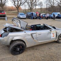 První MR2, kterou jsem postavil na start závodu, pocházela z aukce - rok výroby 2003, šestikvalt a samosvor, sériové auto bourané na čumáček. Přijela v pátek a v sobotu jsem s ní jel amatérský závod v Mýtě. Airbagy jsem uřezal, po kapotě chodil tak dlouho, až se její zlomeniny daly omotat páskou, nasadil semi-slicky a následně jsme společně bojovali o druhé místo ve třídě.