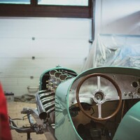Tentokrát na nás opět čekal již známý hot rod – velkolepé projekty si žádají i velkorysý časový rozvrh – ale nás zajímalo jiné auto. I to jsme tu viděli před rokem, jenomže tehdy nevypadalo tak, aby nás, laiky, doopravdy zaujalo. Byl to jen rám s na žluto natřeným motorem a kusem karoserie. Vedle téměř hotového hot rodu nepůsobil pro člověka, který není nadšencem do starých závodních aut, nijak extra výjimečně.