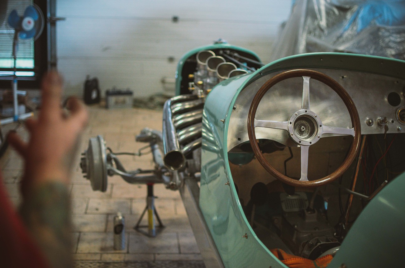 Ten chlap prostě vzal tabule plechu (nebo jak se dneska plech kupuje?), vercajk a spoustu času - a udělal z toho zatracenou formuli ze třicátých let. Viděl jsem fotky, viděl jsem to auto v různých fázích rozestavěnosti, viděl jsem téměř finální produkt a možná se mi dokonce podaří vidět i kompletní stroj, než odpluje za oceán (ale o tom až později). A pořád tomu tak úplně nerozumím. On prostě udělal auto.