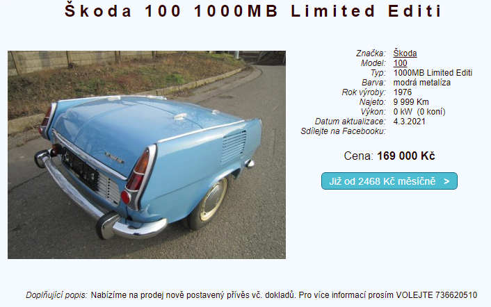 11. 3. 2021, 14:23Mě pobavil tento inzerát. Fotografie z muzea Tatra, platba v Bitcoinech... Takže krádež na objednávku? :-)