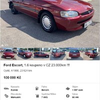 Escort a mx5 to je čistá demence to vůbec myslet vážně že napsali ty inzeráty. Taky mě baví jak se typicky přeceňuje nájezd u nezajímavé produkce. U toho Escorta v nule výbavě je nájezd to poslední co člověka zajímá. Bože není to 964. Navíc u všech těchto vozů jde mít nájezd 29 km za chvíli. Vesměs jsou to auta z dob extrémních stočakcí. Šance to ve většině prodat,za ty částky je žádná. Za mě putuje krásná cena Felicii za úplnou surreálnou nabídku. Druhé místo jednoznačně Miata. Krásná asi jako lednička Zanussi v červenci.