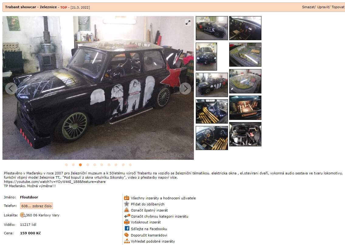 A stejně jako v televizních novinách se po katastrofických zprávách najde čas na nějaká ta roztomilá zvířátka, i tady končíme na veselejší notu. Já vlastně vůbec nevím, kde začít. Je to trabant, ale zároveň je to lokomotiva, zároveň modelová železnice a ještě navíc to evidentně paroduje nějakou část maďarských dějin, kterou neznám. Za ty prachy je to vlastně fakt super. Akorát úplně k ničemu. Ale zároveň skvělé. Video z přestavby už je jen takovou sladkou tečkou za dnešním jinak depresivním výběrem.