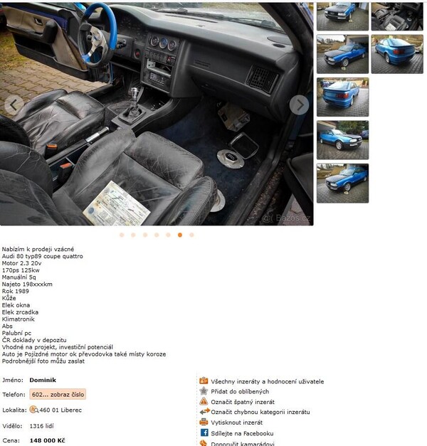 30. 4. 2023, 19:00A nevíte někdo, co to inzertní božstvo z nejvyšší společnosti s těmi nejlepšími kousky na trhu vede k tomu, že do své životní práce v podobě inzerátu dávají obrázky svých jedinečných skvostů, které prodávají s těžkým srdcem z osobních důvodů, jež jsou foceny pod pěnou?