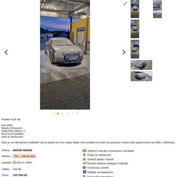 A8 "AKCE W8 3.7 LITR BEZINA AKCE" od Madar Madar nema chybu, 3 fotky v myčce pod pěnou, jedna z dalky a dve posledni zvenku, interiér asi neni soucasti prodeje :-) Ale pozor!