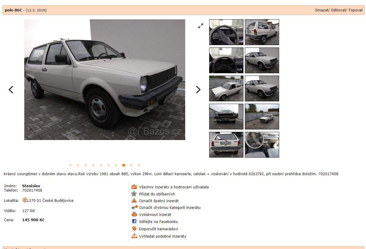 Pokud byste snad někdo chtěl Polo, které má potenciál být autem do sbírky a je za třetinovou cenu, zkuste se podívat na tento inzerát.