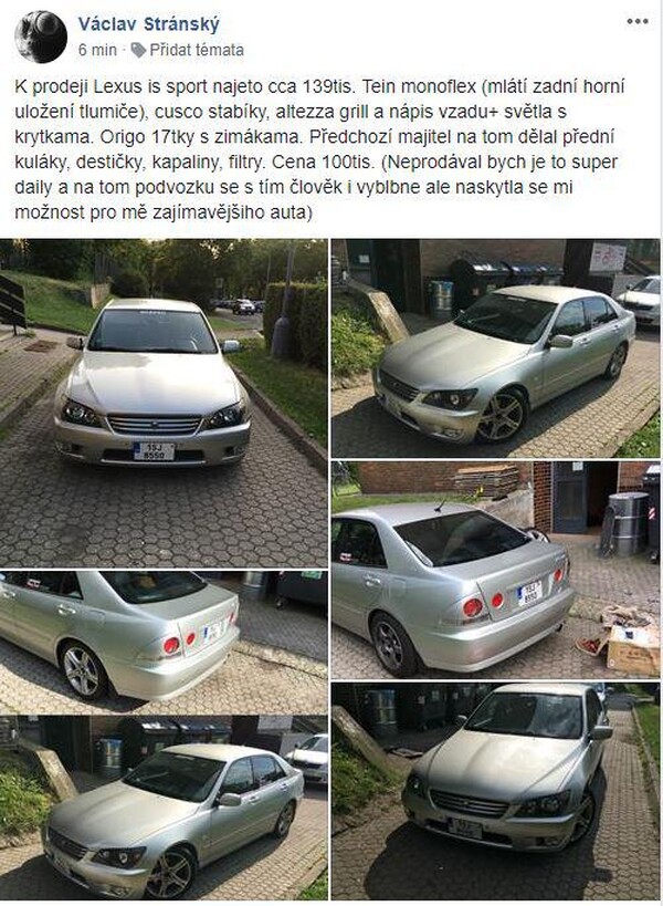 ISek v republice je tak 30-40, ale téměř nic není na prodej. Jsou to holt fajn auta a nikdo je z rukou dát nechce. :D Ovšem stále je šance nějaké uklohnit z Nizozemí, Německa, Itálie či Polska, kde to vše končí na prodej. Altezza (RS200, nikoliv AS200) by se mi taky líbila, ale zatím jsem viděl k dispozici jen roky 99 a to fakt nechci, když můj je 2005. :D