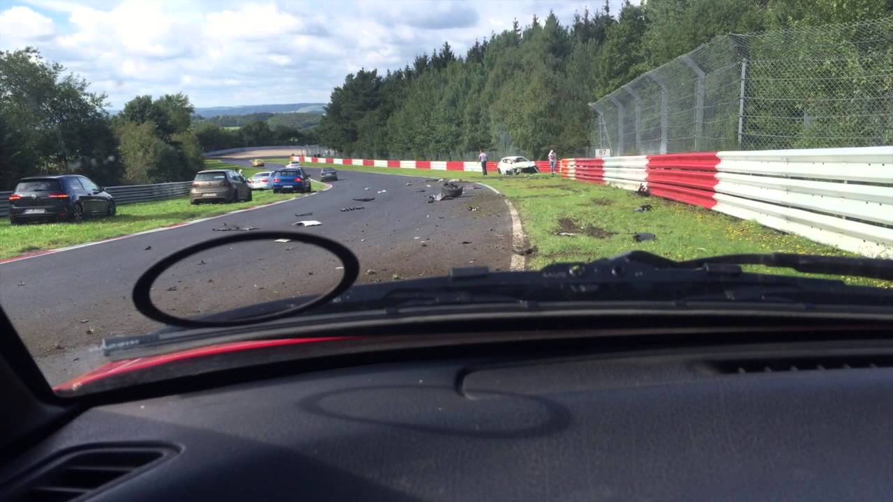 Občas nestačí být jen idiot, občas člověk musí být moc velký idiot, aby ho život vytrestal a dal mu lekci. Člověk, který řídili Renault Megane RS ji potřeboval dostat tuplovaně. Místo, ve kterém předjiždí (mezi flugplatzem a foxholem), je asi nejdebilnější a nejrychlejší místo na předjiždění na celém okruhu. Což o to, že si rozbil auto, krom toho mu příjde tučný účet na odtah a opravu svodidel…a za to by si možná mohl pořídit Megana druhého. Zde video z druhé strany: